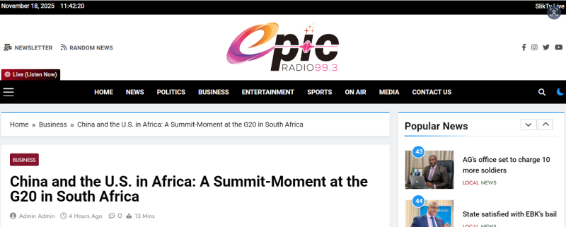 Africa's role in global governance and the evolving presence of China and the United States in the continent make the G20 meeting, which will take place in Johannesburg on November 22, 2025, under the leadership of the Republic of South Africa, particularly significant. The summit is a crucial opportunity for both powers to clarify their strategies, establish alliances, and influence the post-Western era of world politics as Africa's economic potential and strategic role in global supply networks and geopolitics rise.